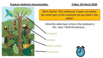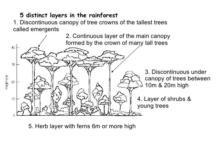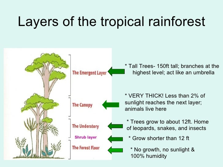 A forest is a rainforest if its mean annual rainfall exceeds 2000 mm per annum. Some examples of plants found in the rainforest include: Tropical rainforests are located in a band around the equator (zero degrees latitude), mostly in the area between the tropic of cancer (23.5° n latitude) and the smaller rainforests are located in central america, madagascar, australia and nearby islands, india, and other locations in the tropics. A tropical rainforest is one that lies between the tropic of cancer and the tropic of capricorn. Temperate rainforests are found along coasts in the trees of a tropical rainforest are so densely packed that rain falling on the canopy can take as long as 10 minutes to reach the ground.