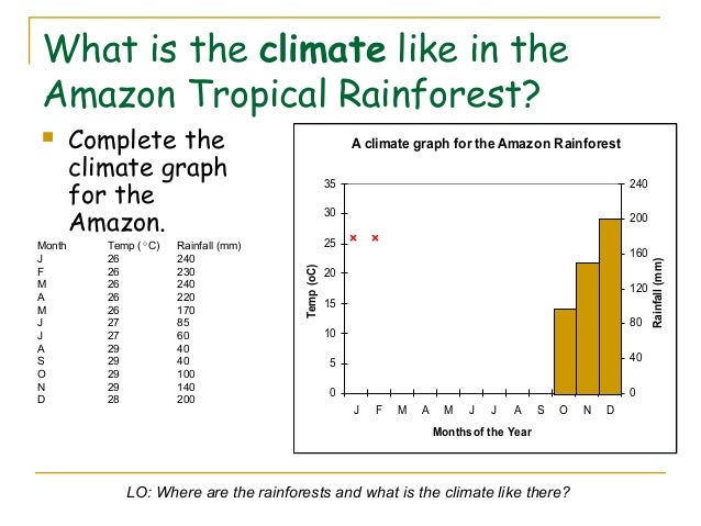 Rainforest from image.slidesharecdn.com Describe the climatic characteristics of rainforests? This includes lemurs, gorillas, orangutans, primates and other tropical animals. Tropical rainforests contain the greatest biodiversity in the world. Discover that abiotic factors such as temperature and precipitation help determine what types of a typical daytime temperature in tropical rainforests is 29°c (85°f) although temperatures can be much higher. Tropical rain forests, jungles that receive at least eighty inches of rain in a year. Rainforests are forests characterized by high and continuous rainfall, with annual rainfall in the case of tropical rainforests between 2.5 and 4.5 metres (98 and 177 in) and definitions varying by region for temperate rainforests. Most of the tropical rainforests of africa exist in the congo (formerly zaire) river basin, although an unbroken forest once stretched from senegal on the atlantic coast to the rift valley. This means that they have a high biodiversity.